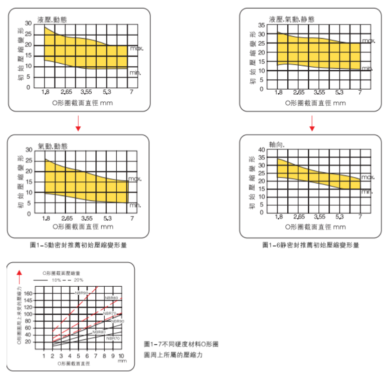 以上二圖中的初始壓縮變形量是根據(jù)ISO3601-2標準,參考了負載與截面直徑的關(guān)系后制成的。